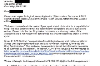 Awkward moment: The FDA refuses to file Moderna's mRNA flu shot biologics license application.