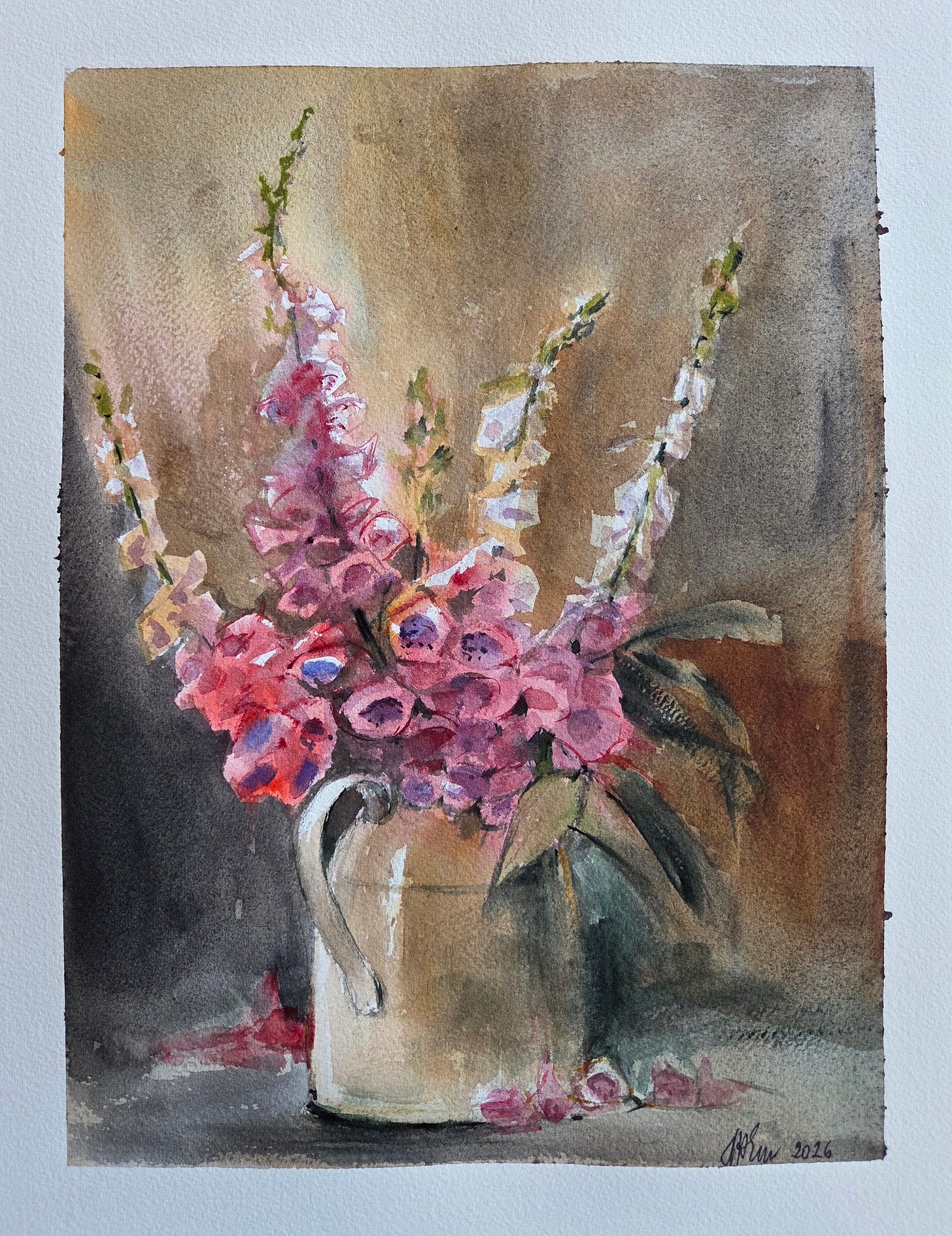 Art for today: Foxgloves, watercolor, 11x14 in.