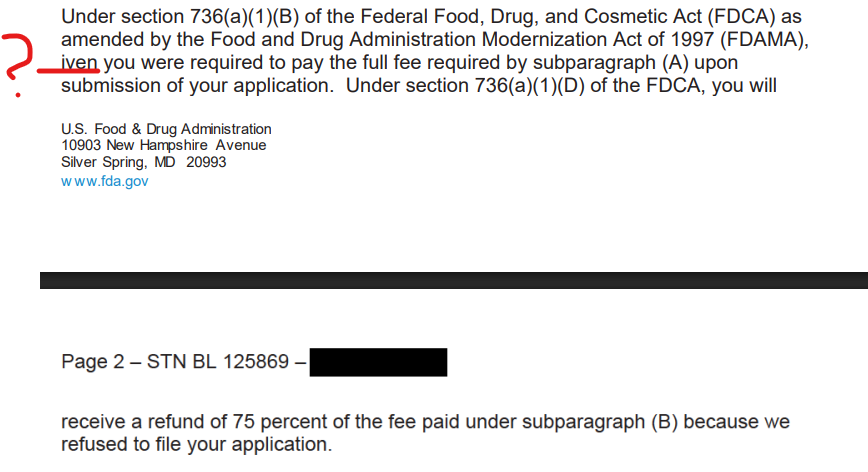 That aside, the only legal basis for not filing Moderna’s BLA application cited by Prasad is the Public Health Services Act statute for “lack of adequate and well controlled” trial design. The other law cited (FDCA) only applies to the fee Moderna paid upfront for the FDA review. Prasad says they will get 75% of this fee refunded.