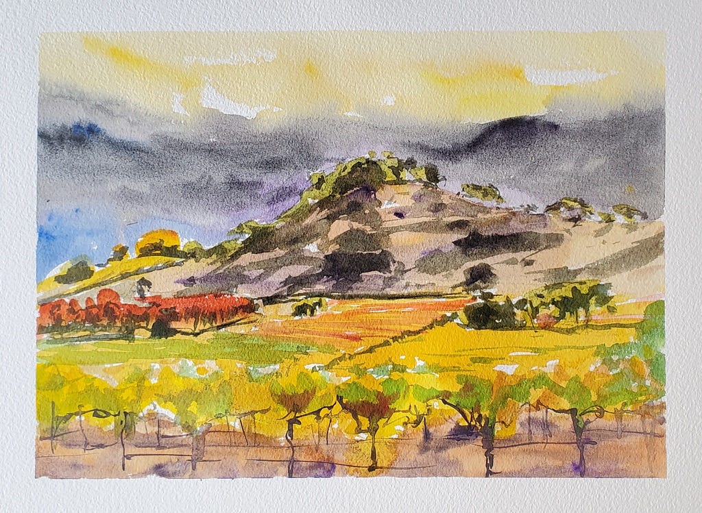 Art for today: Yountville Cross, watercolor, 9x12 in. Available art here.